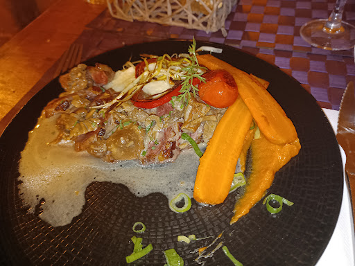 Se voulant sans doute être bistronomique, la qualité des mets était au rdv. En revanche, les quantités servies notamment l’onglet sauce marchand de vin accompagné de purée, champignons sautés et choux rouge braisé. n’y étaient pas. 5 petits morceaux d’onglet découpés (poids total 90gr au plus pour 1 prix de 21€ plus cher qu’à Paris…. quand au plat de ma fille, un minuscule petit morceau de poisson (+-50gr)…. 14€..... Dubitatif me direz vous....... Les accompagnement étaient très décevants. Le riz était gorgé d’eau et la ratatouille n’en avait que l’appellation. Nous dirions plus simplement que c’était une brunoise de légumes sautés sans tomates……… Dommage, nous n’avions nulle part ailleurs pour nous restaurer copieusement....