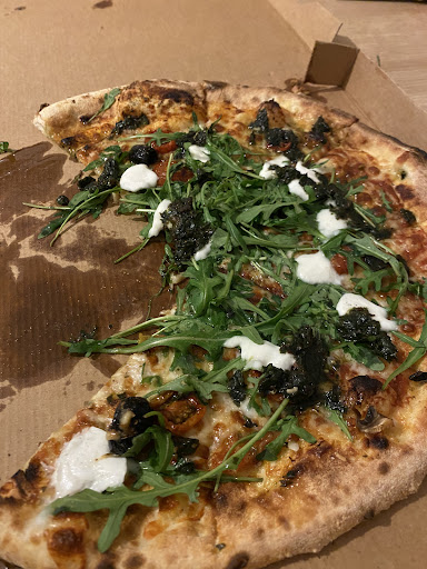 Pizzas feu de bois. Garniture correct, je pense qu'ils peuvent encore monter en gamme à la vue du concept, de la prestation de livraison qualitative et de la qualité des pizzas. Des ingrédients 100% frais voir même des viandes, fromages et autres en direct producteur non industriel. Site internet à retravailler, le visuel me gêne un peu. Tracte publicité aéré. Sourire de la réceptionniste et on sens la concentration dans la patronne qui façonne mais qui n'oublie pas d'être souriante dès que possible.