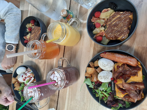 Read moreSuper concept, du fait maison avec derrière nous de grandes vitres qui donnent sur les entraînements de cross training dans un immense hangard ! Une formule brunch pour 28 euros 100% fait maison : 1 boisson froid 1 boisson chaude 1 assiette salée 1 assiette sucrée : très copieux ! Je recommande c'est très sympa même si peu de monde du à l'emplacement reculé je pense, néanmoins très facile...
