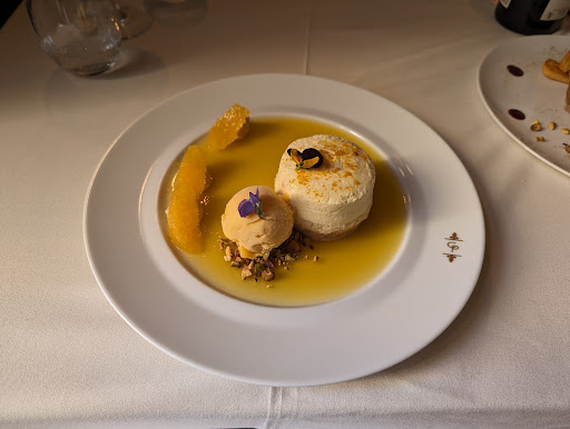 Très beau cadre c’est vrai que c’est magnifique Soirée musicale du jeudi avec un bon groupe de jazz donc belle ambiance En revanche nous avons été très déçus par la cuisine, menu imposé à 52€ et nous ne le savions pas, une allergie sur l’aliment du dessert (le chef qui s’en plaint car ce n’est pas prévu donc « désolée monsieur nous n’avons pas de solution à vous proposer donc ce sera sans dessert » !!!!) Les frigos sont plein, comment est ce possible d annoncer cela à un client ?! Nous avons nous même du trouver la solution en demandant du pain et un bout de fromage. Lunaire au possible ou sûrement trop de caprices ou d'égo en cuisine ?! En ce qui concerne la qualité de la souris d’agneau, 70% de la viande laissée, que du gras, faibles quantités d accompagnement. Un client qui dit qu’il n’a rien mangé et qu’il a encore faim ne peut pas être laissé ainsi dans l’hôtellerie restauration surtout quand on est dans un lieux plutôt « luxueux ». La salle qui n’ose pas faire la remontée en cuisine donc nous comprenons le malaise. Service très souriant mais déstructuré Au moins 4 personnes différentes pour s’occuper de nous Carte des vins qui arrive après l’entrée malgré nos réclamations. Sel et poivre demandés plusieurs fois Bouteille de vin qui arrive, verres non servis.. Bref beaucoup de choses qui franchement n’allaient pas. C’est dommage mais clairement cela ne vaut pas le prix...