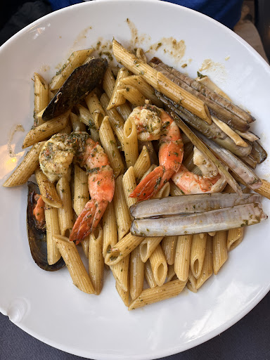 Read moreCet avis se veut constructif car nous avons été assez déçu. Le positif le staff a l'air sympa mais la cuisine est le problème. En effet, nous avons mangé des moules "gratinées" qui étaient carbonisées, rarement vu ça. Nous aurions dû les renvoyer mais en discutant nous nous sommes dit qu'il y en aurait quelques unes de correct et cela ne se fait pas de renvoyer un plat à moitié consommé . Les plats ensuite. Passons sur la daurade royale qui se trouve être 2 petites dorades et les pâtes aux palourdes sans palourdes au début du service... Mais surtout les accompagnements sont inexistants et sans aucune préparation (la timbale de riz blanc nature avec un peu d'aneth et la mini ratatouille franchement pour le prix c'est abusé). Nous avons eu l'impression d'être dans un bar à tapas pour un prix supérieur. Le dessert était très bon (d'où la 3). Enfin, c'était un weekend de pluie et nous avons eu le chance de partager notre repas avec des mouches à mer* collées au vitres. Bref addition salée pour une cuisine sans...