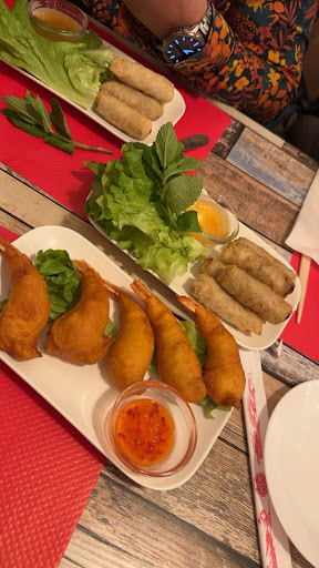 Read moreOn arrive, visiblement on gène On commande juste 3 plats, il y a une erreur (porc au lieu de crevette) Pas de baguettes et aussitôt le sachet donné, on referme la porte derrière vous Plats froids et insipides, mal découpé, absence de cacahuète dans un plat censé en contenir, herbe non coupée et enfouis sous la sauce Prix exorbitant pour une qualité pareil, je ne comprend pas pourquoi il y a autant de commentaires...