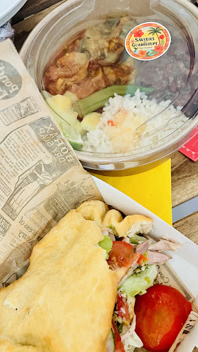 Read moreVous souhaitez faire un petit voyage en Guadeloupe sans prendre l’avion ? Vous pouvez aller les yeux fermés chez Les Saveurs de Guadeloupe Les accras de morue ? Excellent Le boudin ? Très bon La sauce chien ? Ayayayeee goûtez seulement vous ne serez pas déçu Le colombo de poulet et de porc ? Savoureux Mentio spéciale pour la purée de patate douce et l’haricot rouge consommé Le flan au coco ? Toppissime Sans oublier les bokits ((oui oui nous avons tout goûté))