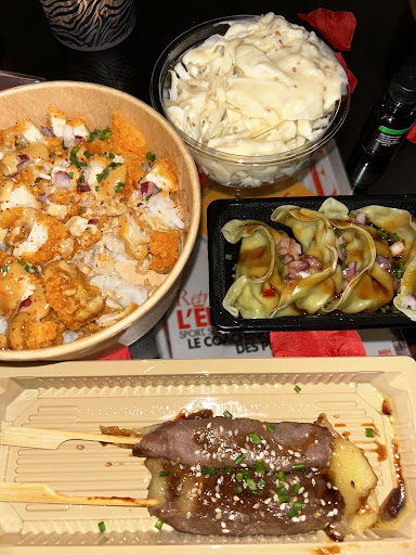 Étant avec des enfants, nous avons opter pour la première option. Ayant de la famille qui mangeait sur place, je suis montée avec mes enfants les saluer et là, j'ai constaté que plusieurs tables 2 places étaient libres. Je vous ai par la suite demandé si cela était possible de nous installer séparément sur 2 tables pour pouvoir manger sur place. Toujours la même équipière, désagréable et agacée nous informe qu'il n était plus possible de modifier une commande prévue à emporter pour la manger sur place. Pourquoi ? Nous n'avons pas pu avoir une réponse logique et censée de sa part...jusqu'à ce qu'un autre équipier aussi désagréable que sa collègue chargé de préparer les commande et se présentant comme "le patron des lieux" ne s'immisce dans l'échange, pour nous dire que les tables libres étaient réservées (j avais oublié qu'on était dans un snack à Sushi et non dans un restaurant étoilé). Pour finir, un vrai manque de professionnalisme, une mauvaise gestion des clients et surtout deux personnes très désagréables. En récupérant notre véhicule garé à proximité de votre snack, nous avons eu le plaisir d'échanger avec des clients qui nous ont assuré que des tables pour 2 voire même 4 personnes sont restées libres... MAUVAISE EXPÉRIENCE ET...