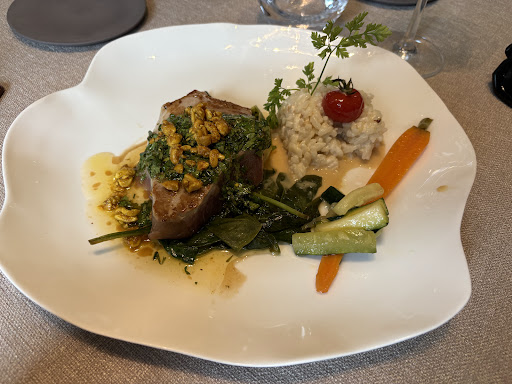 Read moreA notre grande surprise,et ce même en terrasse,on a décidé de ne plus accepter les chiens! Nous ne le savions pas,habitués à venir jadis avec notre teckel nain, alors on nous a quand même "exceptionnellement "donné accès en terrasse à la table que nous avions réservée ! Le menu du jour à 28 euros propose des plats bien cuisinés, goûteux, mais servis avec parcimonie; en plein mois de Mai,on peut aussi regretter que les desserts proposés, Mousse au chocolat ou Mascarpone façon Tiramisu, ne fassent guère la part belle aux fruits de saison,fraises,rhubarbe , etc...Comme de toutes façons nous ne pourrons pas revenir,espérons que cet avis servira...