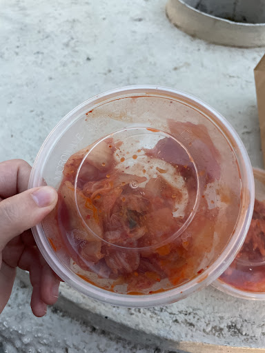 Les choses positives : 1/ la friture a la bonne texture croustillante. 2/ le poulet frit est en bonne quantité 3/ le petit accompagnement à base de daikon en saumure, il me semble, est pas mal , ça rafraîchit et ça soulage le côté beaucoup trop salé. Dommage qu' il y en ait si peu, et pas d' autres sortes,...