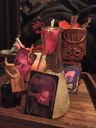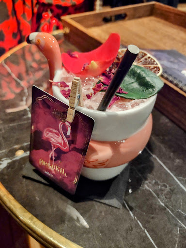 SoirĂ©e filles et dĂ©couverte de ce bar. Les cocktails produits phares du bar sont originaux. Le concept : les 7 pĂ©chers capitaux, vous en commander 7, collectionnez les cartes et le 8e est offert. Je ne mettrai pas la photo de ce dernier pour garder le suspense aux prochains testeurs. Les cocktails sont bons, assez cher pour une contenance parfois alĂ©atoire. Pour un mĂȘme cocktail nous avons constatĂ© une grande diffĂ©rence entre les 2 services du simple au triple dommage....Comptez 12⏠de moyenne par cocktails. Niveau quantitĂ© certains sont petits pour d'autre on cherche l'alcool. Ils sont tous trĂšs bien prĂ©sentĂ©s par contre. Niveau service c'est un peu dur Ă dĂ©rider surtout en dĂ©but de service alors qu'il n'y a pas beaucoup de monde. Vers le milieu de soirĂ©e cela devient vite trĂšs bruyant et pas du tout propice Ă la discussion. Niveau nourriture c'est de l'importation du restaurant d'Ă cĂŽtĂ©,trĂšs simple et pour le moins frugal. Vous devriez faire un prix par personne pour les groupes cela permettrait Ă chaque convive de goĂ»ter un peu Ă tout. Note finale pas non plus exorbitante (35e par personne pour 2 cocktails et la nourriture) mais on a toutes mangĂ© en rentrant ! La dĂ©coration est vraiment sympa Ă revoir Ă©galement la propretĂ© des sanitaires en milieu de soirĂ©e (l'approvisionnement en savon en pĂ©riode de virus notamment).En bref un concept original sur Nancy de bons cocktails mais assez cher niveau quantitĂ©/ prix /alcool : peut...