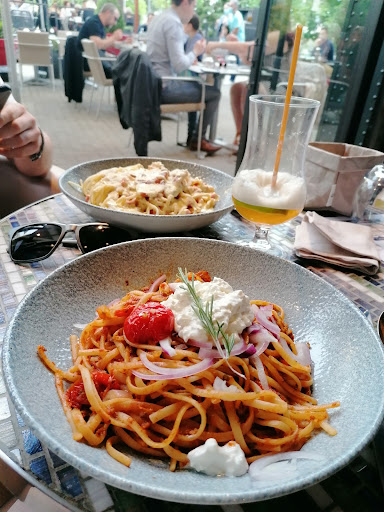 Read moreVisiter le samedi 31 juillet. Nous n'avions pas pu réserver. Nous sommes arrivés dès l'ouverture pour espérer avoir une table à l'intérieur car j'avais froid. Les tables étant toutes réservés à l'intérieur mais la réception a été si compréhensive qu'on a proposé un petit coin entre la terrasse et le salon dans une petite table avec des petits fauteuils. C'était si cosy. La serveuse était si accueillante et agréable ! Après avoir testé des restaurants italiens décevants, ici c'était une surprise. Il y a une carte de produit de saison. La boisson était un thé maison aromatisé à la bergamote, j'ai pris la friture de polenta et mon compagnon l'anti pasti. Il a été réjouis du jambon proposé qui d'ailleurs est présenté dans le coin cuisine dès lorsque l'on rentre dans le restaurant. Pour la suite, j'ai pris la Pasta Love Italy et lui des pâtes carbonara. Une carbonara comme sans crème avec du vrai jambon (j'ai oublié le nom). Malheureusement, on a eu les yeux plus gros que le ventre donc nous avons gardé les restes pour savourer plus tard ce qui fut le cas ! Nous avons pris un café (un Espresso et un double Espresso) avant de partir qui était si bon, si fort, ça nous a réveillé nous qui étions fatiguées.