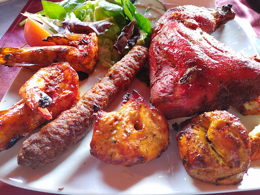 La cuisine est succulente. Le curry épicé (il existe aussi un pimenté que nous n'avons pas testé) est bien dosé et servi avec un poulet tendre et trÚs bien cuit (ce qui est rare). La sauce est onctueuse et va de paire avec le riz basmati de haute volée. Le tout est servi chaud (ce qui est rare) et restera chaud tout le long du repas, les assiettes étaient encore chaudes à notre départ (arrivée 20h départ 21h30). Les Naans sont bons et bien cuits, les nÎtres étaient natures, je ne sais pas pour les autres. Les autres plats et viandes sont servis sur des plaques bouillantes pour vous garantir un plaisir de consommation inégalable.