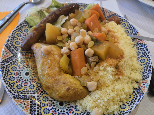 Read moreCouscous très Bon, rien à redire là dessus. Par contre, facturer 10€ le couscous "enfant" c'est vraiment cher pour le peu qu'ils mangent. Nous étions u e grande table de 13, et nous avons payé pour tous nos invités en CB, et même pas offert le thé... Au contraire, facturé 3€ par personne... pour un seul petit verre. On en a repris en "emporté", 3 parts et comme nous avions oublié une serviette brodée, ils nous l'ont donc rendue, donc ils se souvenaient de nous, et toujours pas un petit "cadeau". Nous avons demandé 2 merguez en supplément et elles nous ont été facturées.... Dommage ! On essayera un...