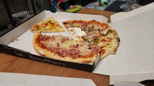 Sur place : salle à la déco agréable, des banquettes, des tables rondes,un éclairage chaleureux. Pas trop bruyante car assez petite. Pour l'hygiène, par contre, attention aux cartes qui sont collantes et/ou poussière uses. Côté température, comme il y a beaucoup d'aller et venue avec les pizzas à emporter, il vaut mieux prévoir une petite laine en hiver. Sinon le service est agréable et efficace, sans chichi et sans pousser à la consommation. Les assiettes de bruschetta sont généreuses, à tel point qu'on a peine à distinguer la bruschetta sous la salade qui l'accompagne. La garniture est fraîche et de qualité. On aurait aimé un côté plus italien avec de l'huile d'olive, du vinaigre balsamique, des tomates séchées. Mais sur la bruschetta Boufflers, on a déjà de bons ingrédients comme des copeaux de parmesan, du jambon cru et de la roquette. Dommage, les olives noires ne sont clairement pas à la hauteur. Pizza à emporter (pas de livraison). Je conseille fortement de commander par téléphone avant de vous y rendre (la carte est dans les photos sur Maps). Même en commandant, il peut arriver qu'il y ait de l'attente (mais dans ce cas ils s'excusent comme ils peuvent !). Les pizzas sont croustillantes (même après un voyage en carton, oui.) et bien garnies. La garniture est fraîche et originale, on se rapproche pas mal des pizzas italiennes même si on pourrait espérer des tomates séchées, un trait de balsamique, ou une burratina...mais la roquette est dispo sur certaines pizzas yum ! La pâte est bonne mais on trouve mieux désormais, car ici elle sera peu alvéolée, n'aura pas la tête d'une pizza napolitaine avec sa grosse bordure soufflée. Ça reste assez plat, mais quelques petites cloques sympas, c'est pas la catastrophe et le pizzaiolo travaille bien avec de la...