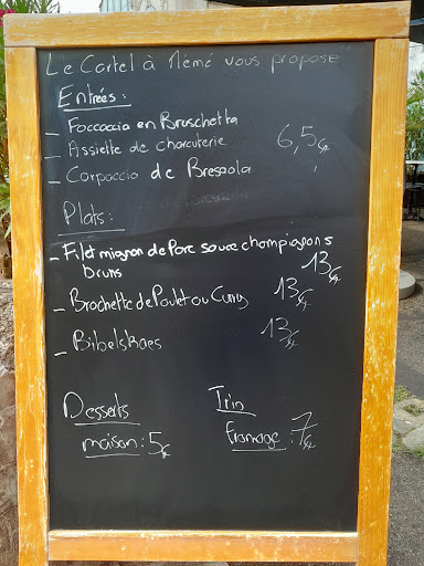 Le cartel à mémé, toute une une histoire que j'ai oublié de demander au patron, le con. Un homme des plus sympathique qui vous accueille chaleureusement chez lui, chez vous pour quelques longues minutes heureuses de votre vie car direct passé le péron l'ont se sent à l'aise tellement les sourires sont généreux de la part de tout le personnel. L'ambiance est belle, les visages éclairés, l'ont ressent que les gens se sentent à l'aise Blaise, ça cause, ça rit, je comprends que nous sommes au bon endroit, et ce bon parfum de cuisine qui nous titille les narines, ce n'est qu'un début.. Mon amie et moi nous sommes isolés sur la terrasse, très calme, un air de vacances dans une bien belle petite citée. Au menu que des bonnes choses, que du frais, trois entrées trois plats quatre desserts au choix, perso ça me rassure. Que de plaisirs pour les papilles, des assiettes généreuses et gourmandes accompagnées d'excellent vins servis au verre. Et mon dessert.. spéciale dédicace à Aurélien.. mon amie repue me délaissant dans ce moment épicurien. Un framboisier à la pistache, une tuerie intégrale, confectionnée par un jeune homme passionné, cuisinier pâtissier et serveur également, nous avons eu le plaisir d'échanger avec un garçon d'une incroyable gentillesse et d'un professionnalisme à toutes épreuves, j'avais les papilles qui en redemandais après avoir déguster sa cochonnerie.. merci Aurélien vous êtes d'une classe rare pour votre âge. Bref !! Mademoiselle, Madame, Monsieur, foncez !!! Venez vivre un moment rare qui vous réchauffera le cœur et l'estomac, pour cela merci à tout le personnel de ce petit resto si convivial. Ah oui !!! l'addition s'il vous plaît !! Bin sérieux à ce prix là et au vu de la qualité culinaire ils me revéront, tant pi pour eux. Un grand merci à tous, nous avons passé un moment unique des plus plaisant. Très bonne...