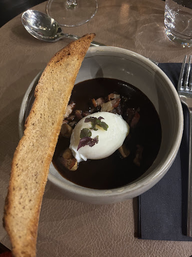 Read moreUn peu déçus par ce restaurant, à qui nous avions bien demandé par téléphone si des options végétariennes étaient possibles et qui nous avait répondu que les entrées étaient adaptables en plats sans problème. Au final, l'adaptation a consisté à ajouter un rang de tomates et un gressin sur la salade tomates-burrata... pour un supplément de 8€ (si l'amie avait su, elle aurait pris 2 entrées directement !). Ce n'est pas grave de ne pas avoir de vraie option végétarienne, mais dans ce cas mieux vaut le dire honnêtement quand on pose la question ; nous serions allés ailleurs pour cette fois-ci et revenus un autre soir avec un groupe sans végétariens. Là, on reste avec un petit goût d'amertume ! Le contenu des assiettes était néanmoins très bon bien que léger pour le prix (pas de féculents avec le poisson, on reste un peu sur notre faim). Les desserts...
