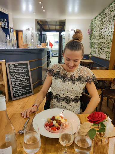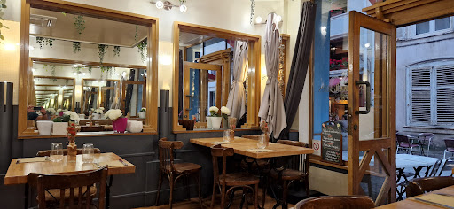 This place is amazing. Vegetarian and vegan options! The waiters were so kind and patient with us. My French isnât great so we communicated in my broken French and I was so appreciative for their attempts at English. The food was SO YUMMY. We (3 of us) got almost everything on the menu today. They offer a three course meal with app, entree, and dessert (you donât need to get all). The meal of the day is such a great deal for all three though. Iâm including photos that do NOT do justice for how incredible this food was. Iâm a dessert person so while I loved everything, my favorite was the chocolate dessert, with some of the coconut whip from another one. Itâs a very nondescript from door and the inside is cozy and charming....