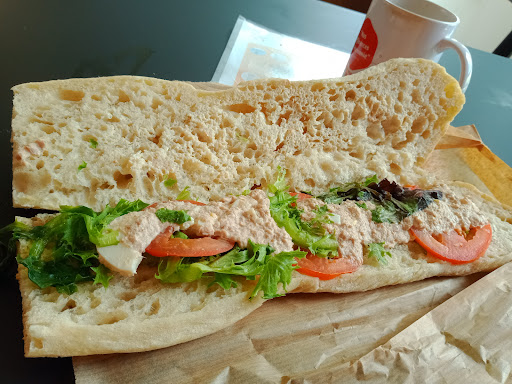 J'explique : J'y suis passé ce midi pour prendre un sandwich. La vendeuse me donne le sandwich et me dit de passer juste derrière pour le paiement. Je me retourne pour payer à un Monsieur, la trentaine, piercing au visage qui me demande ce que j'ai pris d'un manière peu agréable. Je lui réponds "sandwich au thon" et quelques secondes plus tard il me redemande la même chose de manière encore moins aimable. Au point même que sa collègue, juste à coté lui a fait une remarque (que je n'ai pas comprise) et elle semblait être interloqué par la manière avec laquelle il me parlait.