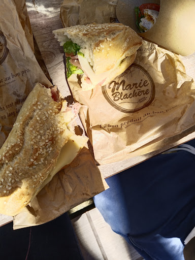 Read moreLe service se dégrade de plus en plus au point où je n'irai plus là bas. Il y a une semaine j'ai vu le boulanger avec le masque sur le menton en train de manipuler les baguettes. Certaines vendeuses sont très loin d'être aimables (heureusement pas toutes !). Si vous venez après 12h30 ne comptez pas sur eux pour avoir des sandwichs et quand vous faites la remarque qu'il n'est que midi et demi on vous répondra '' bah non madame il est midi quarante déjà et non on ne refait plus de sandwich'' donc pour ceux qui quittent à midi et demi il ne faut pas espérer pouvoir manger chez eux ou alors une salade hors de prix... Et le pompon, qui me fait me dire qu'après plusieurs années à venir chez eux que je ne reviendrai plus c'est bien le fait que ce matin alors qu'il n'y a plus de tomates mozza je prends un 3 fromage en prenant grand soin de regarder quels fromages il y a dedans, je m'appercois en croquant dedans qu'il y a du fourme, chose qui n'était pas mentionné sur la pancarte .. direction poubelle pour mon plus grand désespoir et heureusement que je n'ai pas d'allergie car sinon ça aurait pu être très grave...