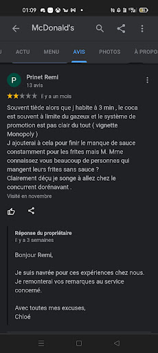 PS: Je suis un gros consommateur de votre franchise depuis petit c est la première fois en général que je vois sa dans un fast food .