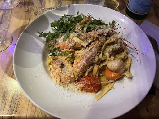 Read moreQuand vous avez l'impression de déranger le serveur ça annonce une suite peu convaincante. Pour 2 adultes et un enfant en bas âge, ça ne devait pas être trop compliqué à gérer et pourtant. Vous demandez un conseil sur un plat, on vous écoute à peine et ça botte rapidement en touche et laisse supposer une méconnaissance de la carte. Le malaise s'installe, on espérant que la cuisine ne sera pas aussi fade que l'accueil. Le temps d'attente n'est pas si long mais il faudra redemander à plusieurs reprises la boisson pour l'enfant, ses couverts et la sauce pour le plat. Générant l'agacement du serveur à peine dissimulé. Ça manque de professionnalisme et surtout de savoir être. On vient pour passer un bon moment malheureusement on a pas envie de s'éterniser. Les bières n'étaient pas suffisamment fraîches, on ne repassera pas en tester d'autres c'est certain. Les plats arrivent : Une assiette pour enfant (des nuggets et des frites), une pizza et une salade composée. Pour la salade, rien de fou dans l'assiette, ça manque d'enthousiasme et de saveurs. Mettre côte à côte différents ingrédients n'en font pas un plat. Ça se plante déjà sur quelque chose de simple, ça rend inquiet. L'assiette pour enfant. Des frites surgelées et des nuggets de presque poulet. Pour le prix, on aurait dû avoir des frites fraîches maison et des croquettes de poulet avec des vrais morceaux de poulet. C'est honteux ! La pizza. Pour rappel, c'est un restau italien et pizzeria, on est en droit de s'attendre à une pizza gourmande, avec une pâte travaillée et goutue. On a ni l'un ni l'autre. La pâte est sûrement passée au laminoir au lieu d'être étalée à la main. Elle est sèche comme du carton, et en même temps pas suffisamment cuite. Comment faites vous pour obtenir ce résultat ? Pour la garniture, on repassera aussi. Mettre des petits bouts de tomates pas cuites et de la roquette, ça n'a pas de sens ni de plus value pour une "pizza nordique". Et ne parlons pas de la taille riquiqui pour une pizza a plus de 20€. Bref, on demande la note pour arrêter là les dégâts. Les prix sont plus élevés que la norme pour ce genre d'endroit et ne sont pas du tout justifiés pour la cuisine proposée. Le cadre ne justifie pas tout surtout si la cuisine est médiocre et que le service l'est tout autant. La cuisine italienne...