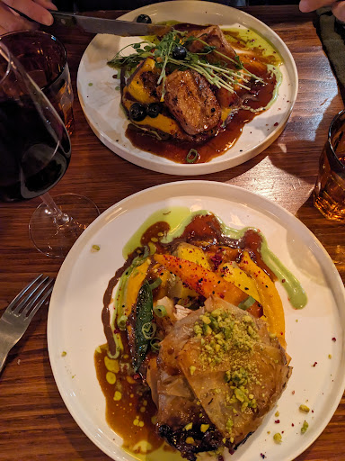 Read moreEncore des réglages à faire ! La carte est alléchante mais la réalisation l’est moins. Poisson trop cuit sur une garniture froide ; pavé de bœuf servit avec une branche de romarin enflammée qui n’apporte rien au plat et irrite les narines ; assiette "végé" qui n’est qu’un mélange de légumes ; crème brulée froide (« croutée » bien avant le service) ; amuses bouches sympas mais beaucoup trop salés. Tout cela n’est pas mauvais et plutôt bien présenté, mais sans rapport avec le prix. La carte des vins est pléthorique et sans lien avec la cuisine proposée. C’est plus une liste à la Prévert de caviste qu’une vraie réflexion des chefs … et à des prix … La salle est joliment décorée mais bien trop petite et bien trop bruyante. Le service est correct. Nous attendrons quelques mois...