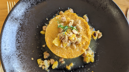 Read moreUne très belle soirée passée, dans ce restaurant trouvé par hasard non loin de l'hôtel où on dormait (on peut y manger sans être client de l'hôtel). L'accueil vraiment chaleureux avec de bons conseils. La paella, suggestion du jour, était très copieuse et très fine (on revient d'un séjour de 2 mois au Portugal). Le foie gras avec son verre de gewuertztraminer était magnifique, surtout que les toasts qui les accompagnaient étaient assez epais pour être croustillants à l'extérieur et moelleux et tièdes à l'intérieur. Le baba au rhum avec du vrai rhum était parfait et copieux, ainsi que la crème brûlée. Bref une soirée qui s'annonçait banale, s'est transformée en très belle soirée. Merci à toute l'équipe. A recommander...