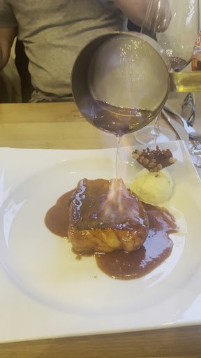 Nous étions 4 ,facture 260 € : avec une bouteille d'eau une vin rouge (48€), 2 dessert 3 apéros , 3 cafés et 3 digestifs. Nous avons très bien mangé. Le service est rapide. Les plats sont chauds assez bien présentés 4 plats différents. J'ai pu goûter au 4. Les 4 étaient bons manque d'assaisonnement pour mes ribs et le canard selon mes goûts, je précise que je suis fumeur donc nous sommes censés mettre plus de sel que les autres. Le cuistot ( patron)est venu nous voir se présenter nous demander nos avis sur sa cuisine et son restaurant. Merci Monsieur. Restaurant très sympathique , nous avons été servi par une serveuse très souriante. Tout au long du repas, nous avons été conseillés par la patronne qui tient le bar qui nous a proposé des digestifs. Seul point négatif mayonnaise & sauce barbecue pas Faites maison comme dans beaucoup de restaurants malheureusement, pourtant tellement simple à faire je vous conseille de faire ça. C'est un plus pour des mangeurs de frites , Et pour mes ribs de bœuf cuit pendant 36 heures, une petite sauce barbecue faite maison, Je peux vous dire que ça vous auriez eu 6 étoiles sur 5. Ah oui et il manque une assiette fromage pour les amateurs comme moi...