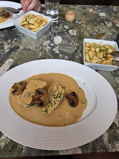 The food was delicious even though I could almost complain that the portions were too generous while my husband was really happy about it. I could not put 5* for the ambiance and service because sometimes I felt a bit awkward. One waiter was taking good care of us while the second one was pretty rude... Mixed feelings though but definitely a place to go...