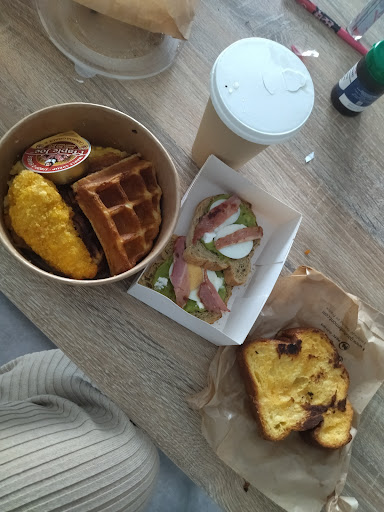 Les gaufres avec les tenders et les oeufs ... Les oeufs sont sans saveur, un goût bizarre et sec aussi..pas bon... Gaufres sèche mais plutôt bonnes, tender sec et mous..