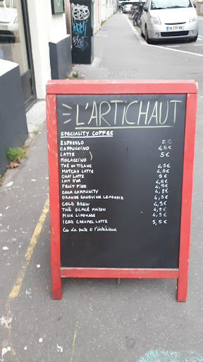 Read moreSi vous aimez une ambiance paisible, les endroits uniques et singuliers où l’on sert de l’excellent café mais aussi toute sorte de boissons à base de produit uniquement naturel alors tout vous pousse à entrer à L’Artichaut. Pour ma part, j’y ai mangé une planche de charcuterie fine, bien choisie et Fromage frais, amendes et salade. De quoi se caler simplement entre midi. Le vin y est servi au verre, quand la bière est nantaises. L’artichaut c’est comme une ambiance « de chez-soi » tout en étant ailleurs. Les patrons, un couple jeune et sympa vous accueillent avec le sourire et vous parle de leur passion « street art », et « manger sain » c’est vous qui le voulez, jamais intrusifs ou envahissant...vous avez bu votre café rien de grave vous pouvez lire aussi longtemps que vous le voulez. C’est comme si à l’Artichaut le temps s’arretait... Franchement on est loin des « Bar branchouille »Starbucks, Etc au café sans goût, loin des points-chauds à la pâtisserie industrielle et insipide... Pour ma part je n’ai pas trouvé cher, à ce demander comment ils font...café d’exception à 2€, une bière authentique à 5€ qu’ils s’excusent presque de vous encaisser...après que vous soyez resté l’après-midi ou presque. J’espère pouvoir y retourner a mon prochain séjour avec un bon bouquin bien calé dans leur fauteuil club. Merci à Jean pour avoir partager sa passion du Street-Art, Amo, Pedro ou encore Groove,( le 4/11 en exclusivité) et à « Coco » pour sa gentillesse, sa réserve et ses bons produits... Longue vie...