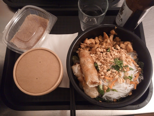 déçu par ce beau restaurant! Je leur ai signalé à mon arrivé que je testais (par franchise) au cuisinier et la dame qui prenait la commande, qui sont d’ailleurs plutôt chaleureux. Pour commencer , il manquait du boeuf? Le mélange du boboun n'était pas équilbré et trop de nouilles, et nems mal coupés: décevant même si les ingrédients sont de qualités. En y retournant une 2ème fois (et dernière fois) le cuisinier n'était pas le même, et mon boboun était beaucoup moins bon (ingrédients présenté rangés, et moins en quantité)..... pour résumer, un personnel sympa avec des bobouns très décevant. Il n'arrive pas à la hauteur de celui de Sorya (rue Léon Jasmin)...