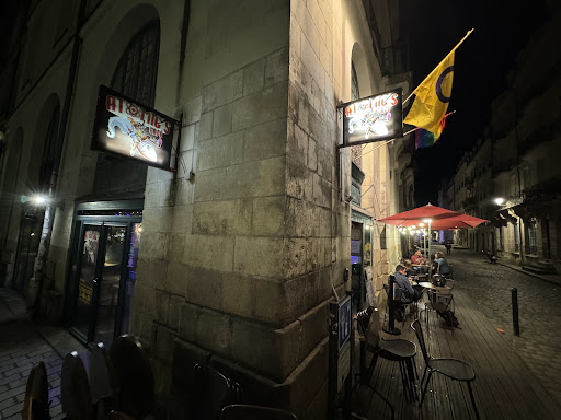 Lieu qui semblait sympa jusqu'à l'apparition du serveur (un petit barbu) agressif qui crie sur les clients en les tutoyants sans aucune raisons apparentes alors qu'on était en terrasse assis jusqu'ici et que c'était la première demande, "TU RENTRE AVEC TON VERRE ! TU RENTRE AVEC TON VERRE ! TU RENTRE AVEC TON VERRE !" (essayant principalement d'avoir l'air menaçant mais il était malheureusement plus ridicule et apathique qu'autre chose). Alors parfois on est fatigué mais j'ai quand même vu dans ses yeux que le bonhomme avait un net soucis de Qi. D'ailleurs d'après les bars alentours ce monsieur semble connu pour l'expérience que j'en ai eu, je ne suis pas le seul à le penser donc !
