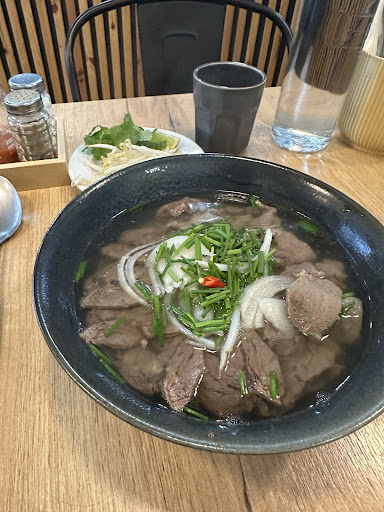 The restaurant seems good, but I would not recommend it for pho. The soup lacks flavor, the noodles were undercooked, and the meat was both chewy and had an unpleasant smell. At €14, it was definitely not worth the price. I could barely eat it. While other dishes might be better, I wouldn’t suggest ordering the pho. Sorry I want to give a good rate but other customers...
