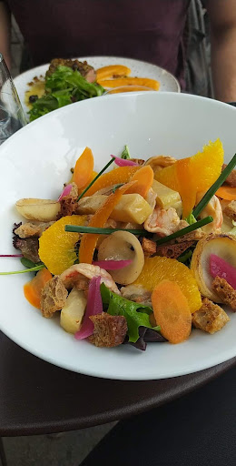 Belle vaisselle, copieusement remplie ! Cuisine variée et authentique, de France ou du bout du monde, de la terre ou de la mer, sucrée, salée ou les deux. Carte suffisamment diversifiée et complète, qui reste simple et lisible. Produits frais et astucieusement cuisinés: un régal pour les yeux, le nez, le ventre et l'esprit ! Laissez vous tenter ! J'ai testé le poké (salade hawaïenne): absolument mortel ! Excellentissime ! Fruits frais, mélange savoureux des goûts, riz cuit à point, assaisonnement au poil ! J'aurais mis une pointe de sauce soja si elle avait été salée, c'est le seul minuscule bémol de cette très bonne table. Cafés gourmands gourmands 👍 Cadre convivial, familial, détendu. Du coup : soirée au top !
