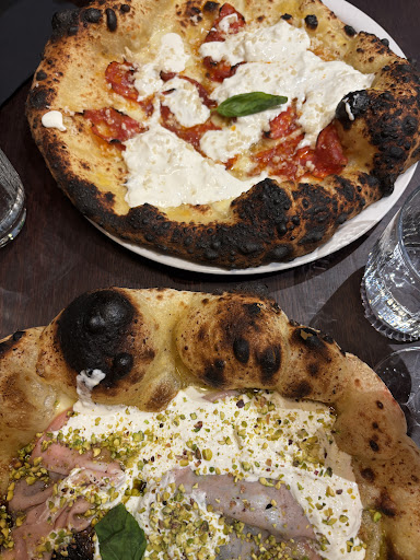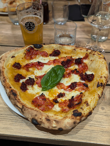 La carte propose des plats qui sortent vraiment de l'ordinaire. J'ai optĂ© pour la pizza "666", une crĂ©ation piquante et surprenante, composĂ©e de produits que je ne connaissais pas, mais dont la qualitĂ© m'a impressionnĂ©. En entrĂ©e, nous avons partagĂ© un camembert rĂŽti au miel et une petite pizza aux anchois, deux choix qui se sont rĂ©vĂ©lĂ©s ĂȘtre des dĂ©lices. Pour couronner le tout, les desserts ont Ă©tĂ© Ă la hauteur, avec une panna cotta dĂ©licate et un tiramisu au Nocciolata, tous deux aussi originaux que savoureux.