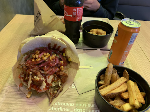 Très déçu de l'expérience berliner. Pour commencer c'est très chère pour manger quasiment que des légumes avec un tas de salade il n'y avait quasiment pas de viande pour 14 euro clairement nul zero! La viande n'est pas vraiment de bonne qualité le pain idem du pain qu'on peut acheter en industrielle et que dire des frites je n'avais jamais manger de frites aussi mauvaise. Le sandwich étais froid là viande aussi. De toute on le voit très bien les résistance qui cuit la broche ne sont même pas allumé à part tourner c'est tout ce que fait la viande à mon avis la viande étais réchauffer au micro-ondes. Et le comble je demande le sandwich sans grenade, biensur il y en avait... Donc je vais voir l'employé pour lui informer de l'erreur que fait il... Il les à enlever du sandwich à la main derrière sont comptoir... Imaginez quelqu'un qui est allergique au grenade cela aurait pu fatal pour la personne. Inadmissible!! Je me faisais une joie de goûter un kebab berliner et bien sachez que je n'y reviendrai jamais et vous pouvez être sûr je ne le conseillerai à personne. Rien ne vaut un bon vrai kebab Turc ! Passer votre chemin si vous aimez...