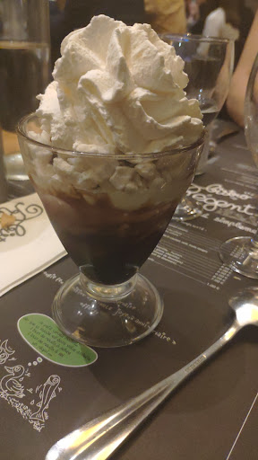 Les repas sont arriver à notre table, une autre serveuse arrive, elle poussait nos affaires personnelles, lunettes, téléphone brusquement, de plus nous nous sommes rendues comptes que les couverts était sale ( reste de nourriture dessus).