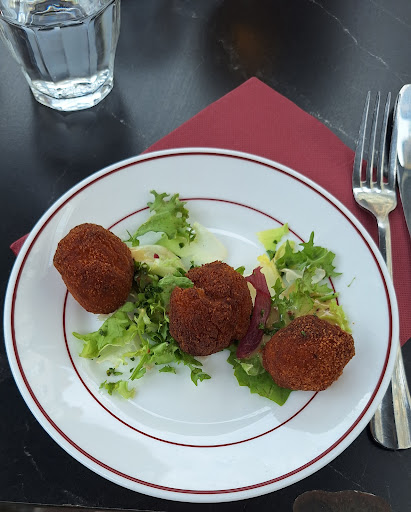 Ce qui nous a déçu: les plats semblaient avoir été mis dans l’assiette en mode cantine (grosse louche de purée informe avec l’andouillette, frites en vrac…). On ne s’attendait évidemment pas à une prestation d’étoilé, mais ça faisait peu rigoureux. le dessert, très probablement surgelé pour le cas du gâteau nantais: on sent d’abord le rhum, puis le sucre froid, et l’intérieur qui glace les molaires. Le flan qui accompagne le café gourmand semblait réchauffé au micro-ondes. la plonge: les couverts étaient propres, mais en partant, l’équipe essuyait les couverts dans l’une des salles du restaurant, à la vue des clients. C’est convivial mais pour le moins étonnant. J’ai eu extrêmement mal au ventre rapidement après être sortie. Chaîne du froid? Aucune idée. 🤷 Pas de bol pour cette fois.