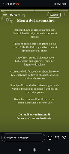 Read moreBeau cadre et belle ambiance. Salle bruyante si présence de groupe. Très bon accueil, serveur sympathique. Les plats sont très bien présentés. Testé avec un ami, l’avis est donc partagé et effectué avec lui. Au vue du prix pratiqué les assiettes devraient être plus gourmandes niveau quantité. Possibilité d’avoir Entrée + Plat ou Plat + Dessert pour 20 euros. Hormis le décalage de tarif (20 euros pour deux plats en pause déjeuner le midi c’est beaucoup) c’était très bon. Je ne pourrais malheureusement pas venir régulièrement pour déjeuner car le prix pour deux assiettes en semaine est trop cher. Un prix de 17 euros maxi serait plus judicieux pour faire profiter plus de personnes et avoir un repas complet. Cela ne remet pas en cause la qualité des plats mais je mange très bien aussi pour moins...