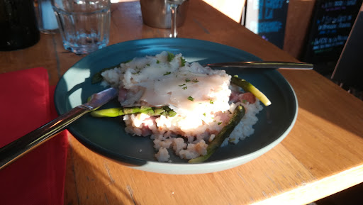 Read moreRéponse à votre commentaire : Je vous invite à vous interroger sur les valeurs auxquelles vous semblez tenir mais qui ne sont pas évidentes en lisant votre commentaire et celui que vous avez adressé à Brieuc. concernant le service, nous nous sommes retrouvés avec une jeune fille qui ne connaît absolument pas sa carte et qui est incapable de nous donner une simple information sur la provenance des vins ou le caractère du vin. Soit.... ca peut arriver... il lui suffisait d aller se renseigner et de revenir vers nous avec les infos. Prenez le temps de former ou de vous assurer qu vos serveurs savent de quoi ils parlent sur les produits que vous vendez. les pains burgers froids.... je vous rassure nous l avons bien signalé avec toute la politesse requise dans ce genre de situation. Cette fois ci elle a eu la présence d esprit d aller se renseigner, pour juste nous préciser que les pains étaient toastés mais arrivés froids dans nos assiettes, aussi froid que sur le ton surlequel nous a répondu la même serveuse. Elle a vite pris la poudre d escampette, sans que nous ayons eu le temps de l interpeller de nouveau pour manger chaud. Quelle sont les top valeurs dans le service ? Politesse, sourire et prévenance, la base du professionnalisme. Quand un client fait une remarque justifiée la moindre des choses c est d essayer de le satisfaire au mieux. Alors rassurez vous, heureusement la jeune génération qu incarne Brieuc semble avoir intégré les bons réflexes pour satisfaire au mieux son client. Vous devriez en prendre de la graine...