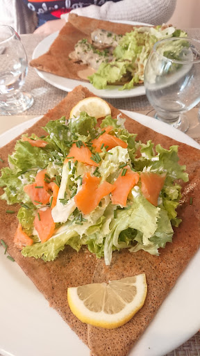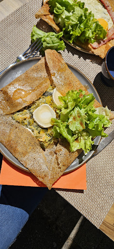 Bonjour, découverte pour ma première fois depuis tellement d'années ... Vous savez que je suis un peu exigeant... ptit fils de crépière (22 centre Bretagne). Alors j'ai toujours de la comparaison, à la recheche du meilleur ! Il me faudra revenir, car pour se faire une idée j'ai pris les basiques du 'breton'. 1 - Galette saucisse 2 - Galette andouille 3 - Galette, oui Galette beurre sucre... cidre brut*. 1 - la saucisse n'est pas une vraie saucisse bretonne, blanche et manque de saveur, 😢 servie coupée en 2 sur la Galette ( et non entière roulée dans la galette) servie avec une sauce maison, très bonne, mais j'avais demandé de la moutarde. 2 - Humm quelle est bonne cette andouille de Guémené, super Galette simple et gourmande. 3 - Galette à mon goût, avec un peu trop de beurre ( qui la rendue un peu molle) je les aime plus cuite, plus sèche (le breton me comprendra) et le sucre, à repartir aussi sur le dessus sans en rajouter. Nous étions 4, mes 3 ami.e.s ont adorés sans aucune remarque négative. Dixit: Galettes fournies et délicieuses. Merci au cuisto. ... c'est sur, je reviendrai pour la gourmandise d'une Galette fondue de poireaux truite fumée... Cadre agréable et bien situé. Réservation obligatoire... c'est préférable 😉 A bientôt.