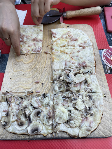 Read moreUn régal !!! A la recherche d'un endroit pour dîner à Nantes, en remontant d'Angoulême (BD) avec des déviations (des tracteurs sur l'autoroute !😉), pour aller à Rennes, après plusieurs détours dû à des sens interdits dans le centre de Nantes et la recherche d'une place de stationnement...On trouve un stationnement non interdit sur une grande place et dans la foulée : le Flam's ! Allez on entre, le service bât son plein, de grandes tablées où la bière coule à flot et des tables familiales ou d'amoureux...Une dame très gentille nous installe et nous décrit les formules...Et c'est le début d'un délice pour nos papilles, la pâte est légère et croustillante et les divers ingrédients parfumés et variés. Un petit verre de Pinot noir après la bière ambrée et rassasiés nous n'aurons pas besoin de dessert avant de reprendre la route. Bravo et merci. L'équipe est très sympathique et à l'écoute des moindres désirs...
