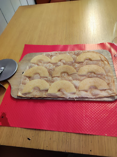 Le jour J, des morceaux de lardons se faufillent dans toutes les flamenkuches. Le chef se permet de s'énerver contre les clients quand on lui fait la remarque. Mr Le Chef ne pouvait pas se laver les mains avant de préparer des flamenkuches végétariennes.
