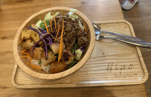 Read morePassé devant un peu par hasard, j'ai été attiré par la bonne odeur qui s'en dégageait. Hipo est un lieu un peu atypique, dans la mesure où il y a une activité à la fois de bar-tabac d'un côté, et de restauration (vietnamienne) de l'autre. On y est très bien accueilli : Binh et Hoan sont souriants, prévenants, et s'intéressent aux gens. Cela fait plaisir de rencontrer des gens ouverts, et qui vous considèrent comme une personne à part entière, et non pas comme un énième client. La nourriture y est très bonne (je n'ai goûté qu'un bo bun et un banh mi pour l'instant), simple, faite avec une attention portée aux saveurs, et vraiment bon marché. Autre point positif : de petits piments (forts) apportés en option si on le souhaite; On ne brade pas le goût original pour préserver les fragiles palets européens...