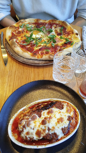 Au-delà du fait que tout était très bon, tout ces détails m'ont interpellés : -L'assaisonnement de la parmigiana était parfait et surtout pas trop grasse -La pâte à pizza et la sauce tomate vrai star de la pizza -L'origan sur la pizza italienne -Les serviettes en tissus -Les nappes sur les tables -La cuisine ouverte avec un poste propre et bien rangé -Une carte des desserts restreinte en semaine, signe de fraîcheur et de respect à mes yeux -Le tiramisu bien équilibré et juste