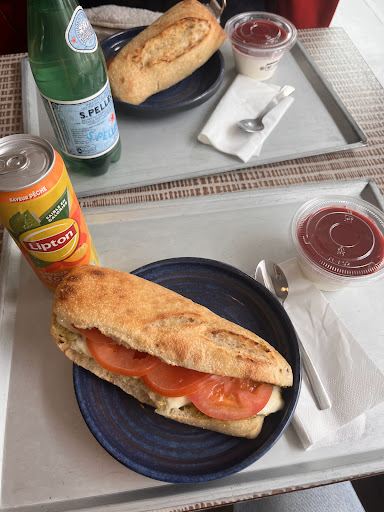 Complètement déçue de cette restauration rapide ! Prix non affichés des sandwichs et salades, en revanche on voit au mur "pour l'achat d'un sandwich ou d'une salade, formule boisson et dessert à 4,10€". Nous étions 2, quelle fût donc notre surprise quand à la caisse on nous annonce 17,20€ !!!! Quand on fait part de notre étonnement, on nous répond que c'est une formule mais sans sandwich compris, autant dire qu'à ce prix là on s'attendait à une qualité conséquente de notre "repas"... et bien non : sandwich à peine remplis, dessert trop sucré ! En bref, on passera notre chemin la prochaine fois !!!! Une petite mention spéciale pour notre jeune serveur qui a été très aimable, contrairement à sa collègue (ou responsable) qui, au prix du menu, pourrait s'acheter...