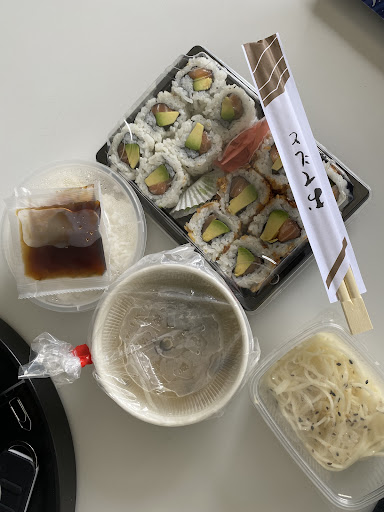 La commande arrive : un vrai désastre. Les sashimis avaient un goût de renfermé, les autres pièces étaient fades, sans aucune fraîcheur, comme si tout avait été préparé il y a plusieurs jours puis simplement stocké au frigo. Rien ne semble fait à la minute, tout respire la négligence.