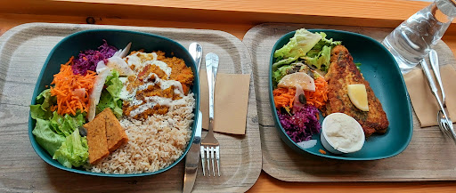 Impatients d'y revenir, nous avons renouvelé notre expérience de 3 ans auparavant. Nous avons pris burger et tofish, le burger excellent, crousti-moelleux avec plein de saveurs, seul hic : l'option fromage végétal à 1€. Petite déception sur le tofish, peut-être pas assez cuit et tofu caoutchouteux. Les frites maison très bonnes, un goût de trop peu... 😉 Grande déception pour le tiramisu, crème trop légère, manque de crémeux, et génoise remplacée par des petits Lu. On ne sent pas le café, et très petite quantité pour le prix. J'en ai parlé à la personne au comptoir mais elle ne semblait pas très concernée... 🙁 L'ambiance est sympa sur la terrasse en bois, peu de passage dans la rue. 🙂