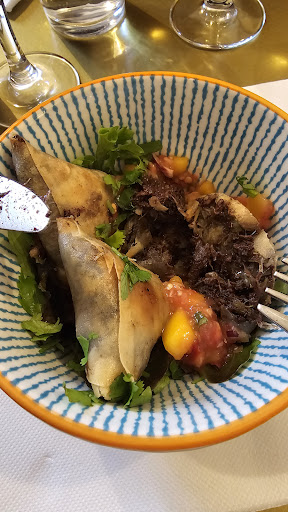 Read moreUn déjeuner très sympa entre collègues. Un chouilla serré sur notre grande tablée mais l'ambiance était chaleureuse. Je crois que le service ne s'attendait pas forcément à une telle folie Un vendredi et était Un peu speed mais nous avons pu profiter en arrivant tôt de leur sympathie et de leurs bons conseils. Petite précision qui pour moi est vitale: si vous n'aimez pas la coriandre, dites le car dans les plats ce n'est pas précisé et ce restaurant en est fan! Mon entrée n'avait pas été comptée au départ, je l'ai demandé et ai été rapidement servie, je l'ai donné à un collègue car je ne supporte pas la coriandre. Dommage ces petits samossas aux boudins noir étaient...