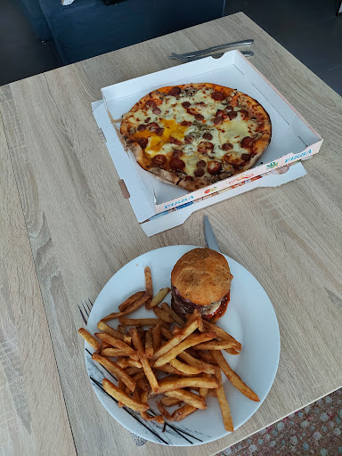 Les pizzas sont à déguster sur place ou à emporter. Pour ce qui est de la salle du restaurant, les tables sont bien disposées et cela laisse de l'espace pour circuler. On n'est pas serré. La musique est bien choisie. De la musique douce et qui convient très bien au lieu. Le service est rapide et l'attente est donc raisonnable. Pour ce qui est de la pizza à emporté, il suffit d'appeler le restaurant qui demandera l'heure à laquelle vous pouvez venir la récupérer. Les pizzas sont fournis avec sauce piquante si vous le demandé. Elles restent bien au chaud dans leurs cartons de transport si vous en avez pour 10 à 15 minutes maximums de transport.