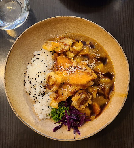 le plat dĂ©gustĂ© : Le curry japonais Ă©tait un vĂ©ritable chef-d'Ćuvre de saveurs. Les lĂ©gumes d'automne Ă©taient parfaitement cuits, conservant leur texture croquante. Les pickles apportaient une touche de fraĂźcheur et d'aciditĂ© qui se mariait magnifiquement avec le curry. La tempura de lĂ©gumes Ă©tait lĂ©gĂšre et croustillante, et le riz Ă©tait parfaitement prĂ©parĂ©.
