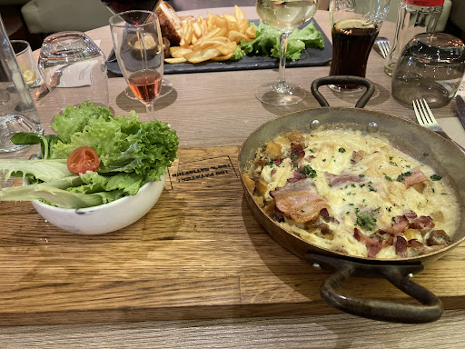 La tartiflette au reblochon de ma compagne avait lâair plutĂŽt bonne, elle lâa dâailleurs apprĂ©ciĂ©e. Pour ma part, jâavais pris un cordon bleu avec des « pommes de terre rĂŽties » qui sont en fait de simples frites, lâensemble Ă©tait Ă peine chaud, donc le comtĂ© malheureusement pas fondu, la sauce Ă la crĂšme et aux champignons Ă©tait tellement compacte et minimaliste, que ma viande nâen aura jamais profitĂ© âŠ